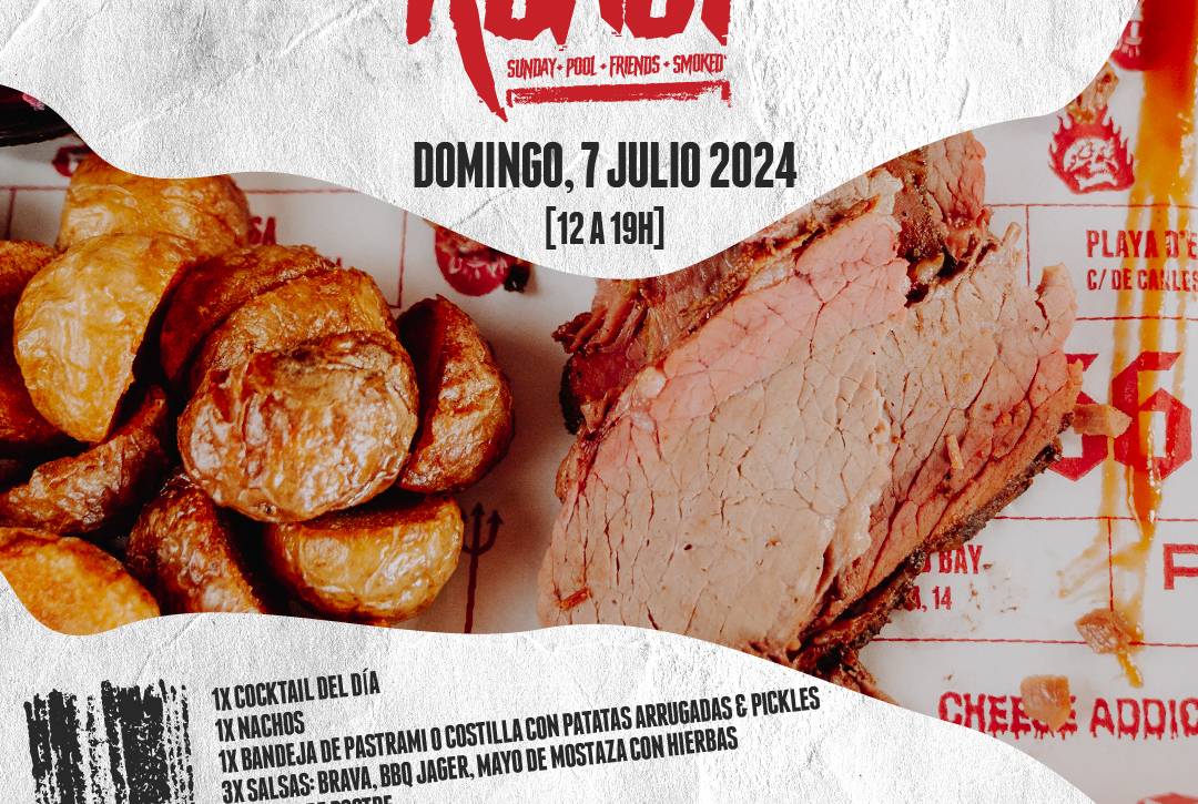 esTE DOMINGO 7 DE JULIO DESDE LAS 12:00H VUELVE NUESTRO NUEVO "ANTI SUNDAY ROAST" UN DOMINGO CON AMIGOS, LA PISCINA DEL HOTEL RYANS LOLAS Y LAS CARNES AHUMADAS DE NUESTRO INFIERNO.