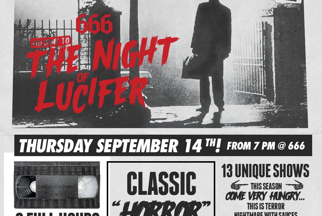 Welcome to a night of terror at 666! We are pleased to invite you to a unique experience where cinema and our burgers come together.
